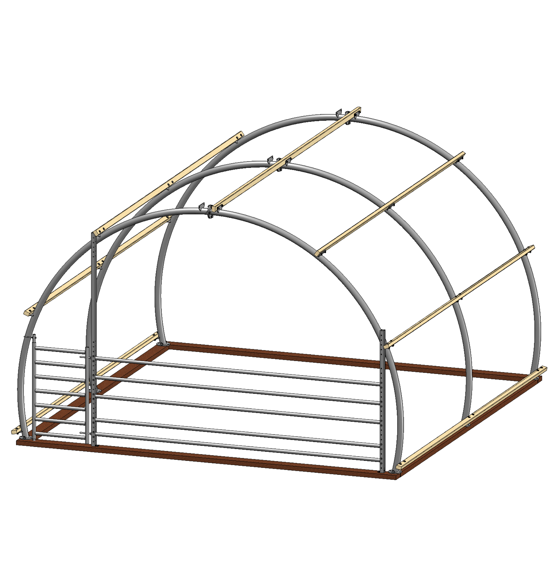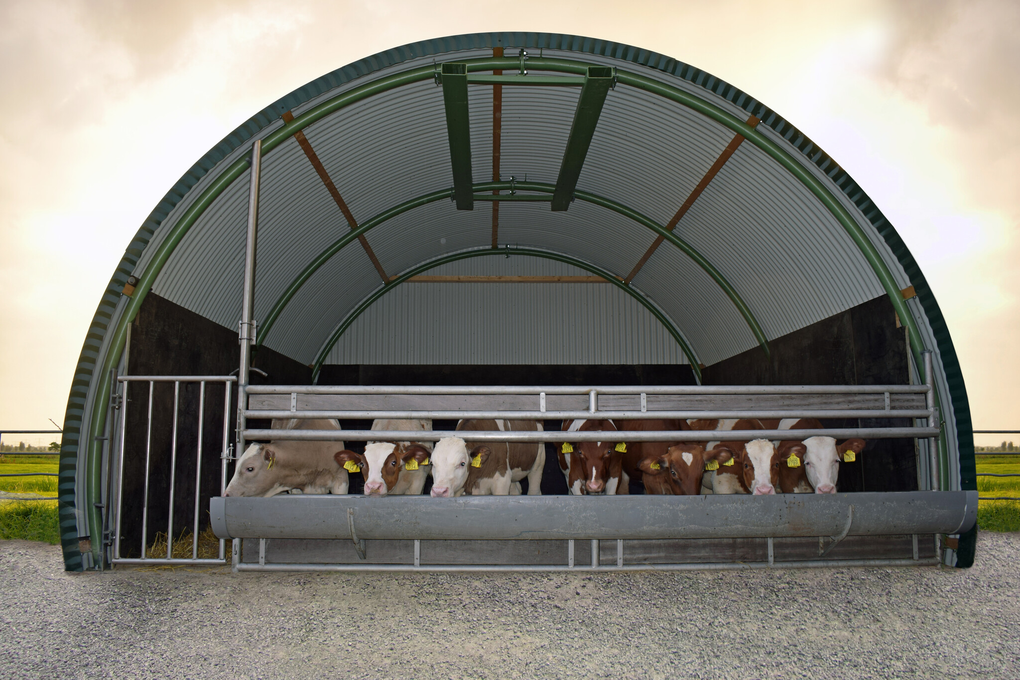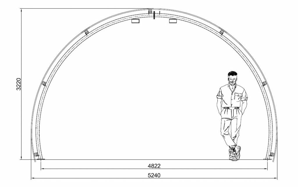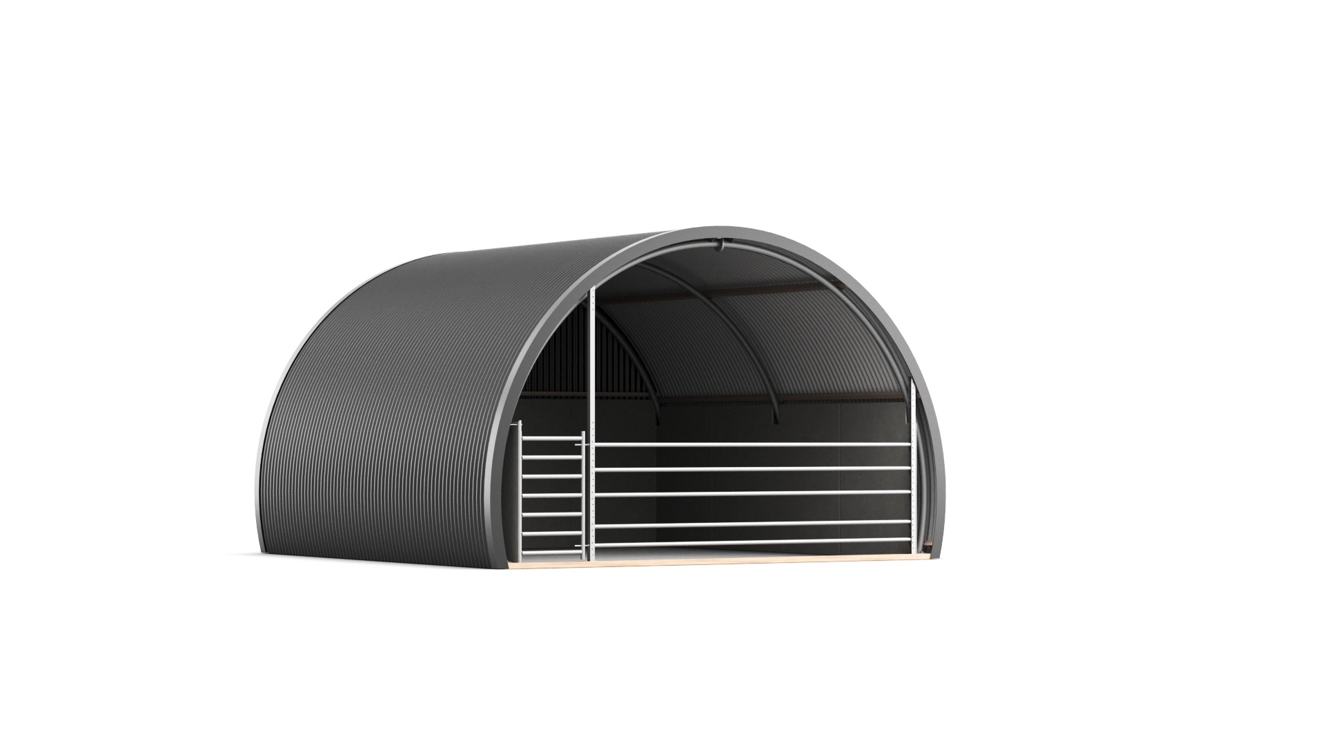 Ons Dierenverblijf R5 is een moderne interpretatie van de klassieke nissenhut: een uiterst sterke, halfronde constructie die meer dan 180° doorloopt. De gebogen buisspanten en stalen beplating vormen een robuust, onderhoudsarm onderkomen voor dieren. Dankzij de doordachte vorm ontstaat maximale binnenruimte, extra loopcomfort langs de zijwanden en uitstekende weerstand tegen zware belasting en weersinvloeden.