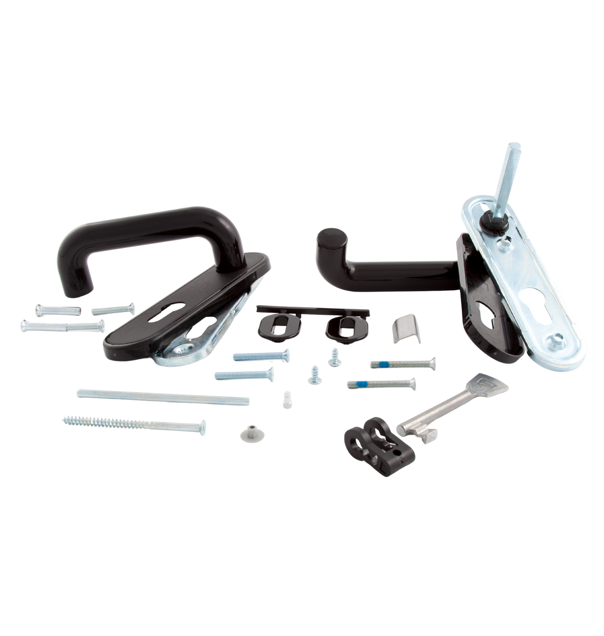 Deze drukgarnituurset is bedoeld voor het volledig monteren van onze stalen loopdeuren. De set bevat alles wat nodig is: een stevig handvat met sluitplaat, een volledig slotmechanisme met baardsleutel en alle benodigde bevestigingsmaterialen. Perfect afgestemd op onze deurtypes, zodat montage snel en probleemloos verloopt. De duurzame afwerking garandeert een lange levensduur en een nette, functionele afwerking van de deur.