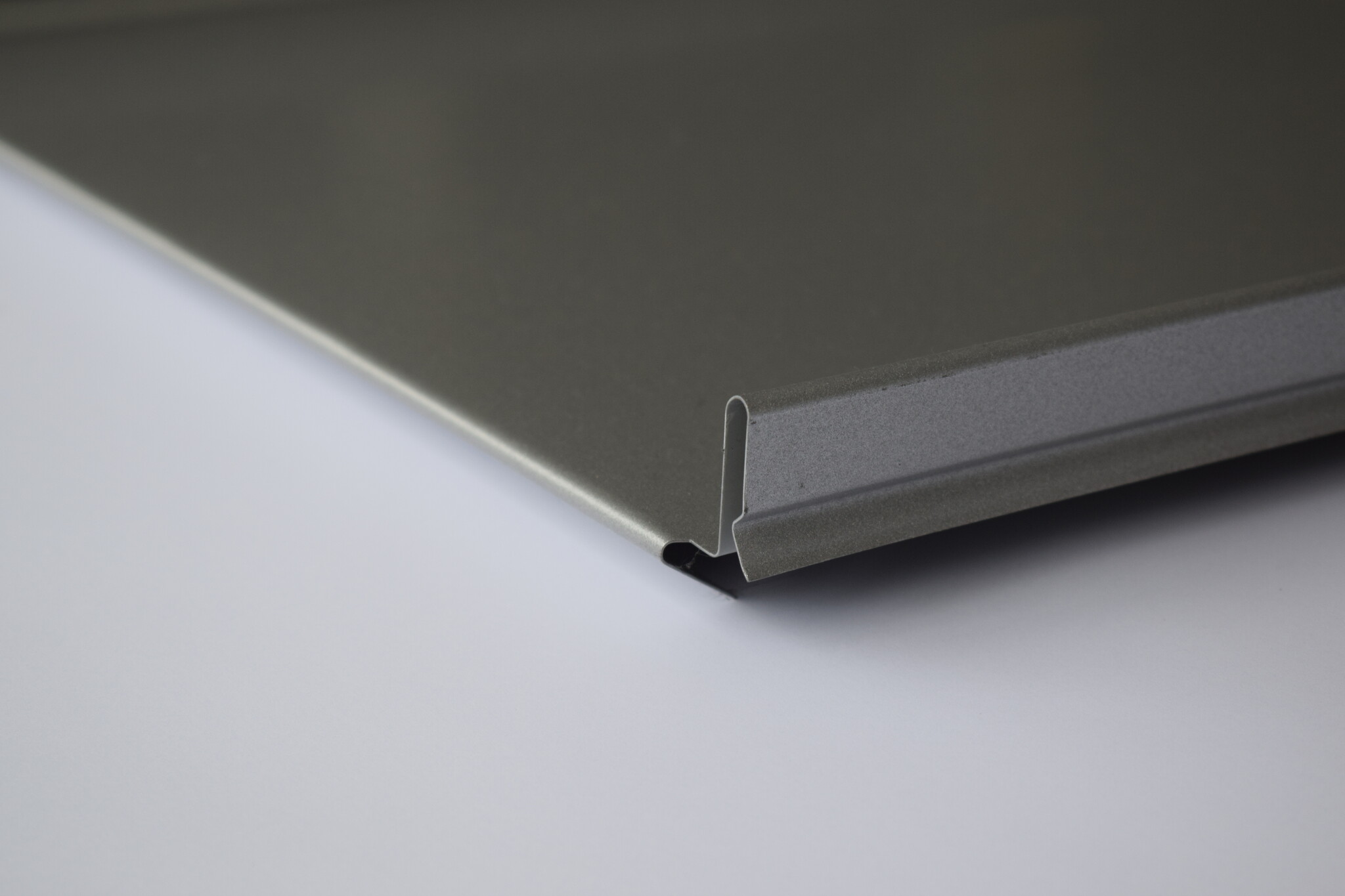 De felsplaat 32/475 combineert de moderne uitstraling van een zinken felsdak met het gemak en de duurzaamheid van staal. Dankzij het slimme kliksysteem worden de platen blind bevestigd, wat zorgt voor een strak en waterdicht resultaat zonder zichtbare schroeven.