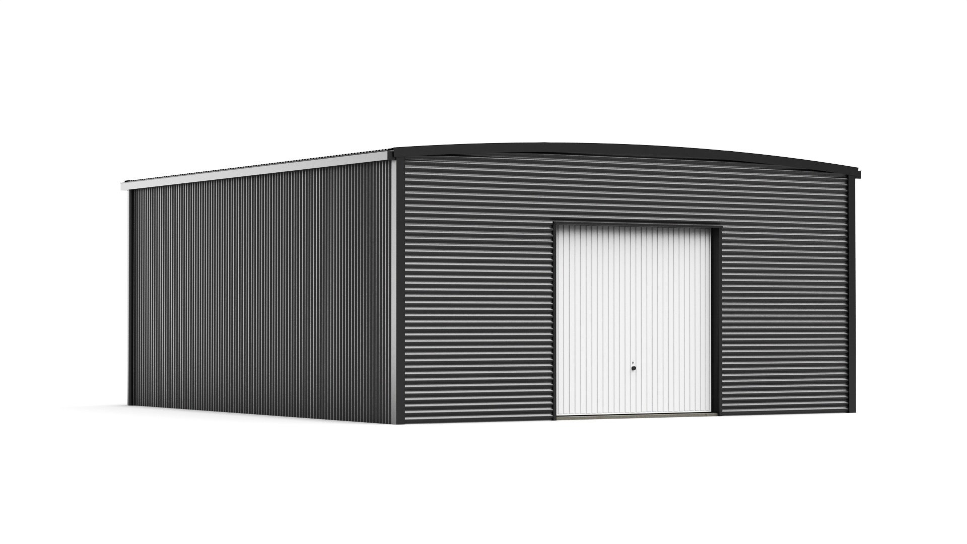 De Variant+ biedt de ideale oplossing wanneer er behoefte is aan een kleinere ruimte en is daar ook speciaal voor ontwikkeld. Het is een compacte loods met rechte zijwanden en een licht gebogen dak. Zeer geschikt als opslagloods met stellingen bijvoorbeeld.