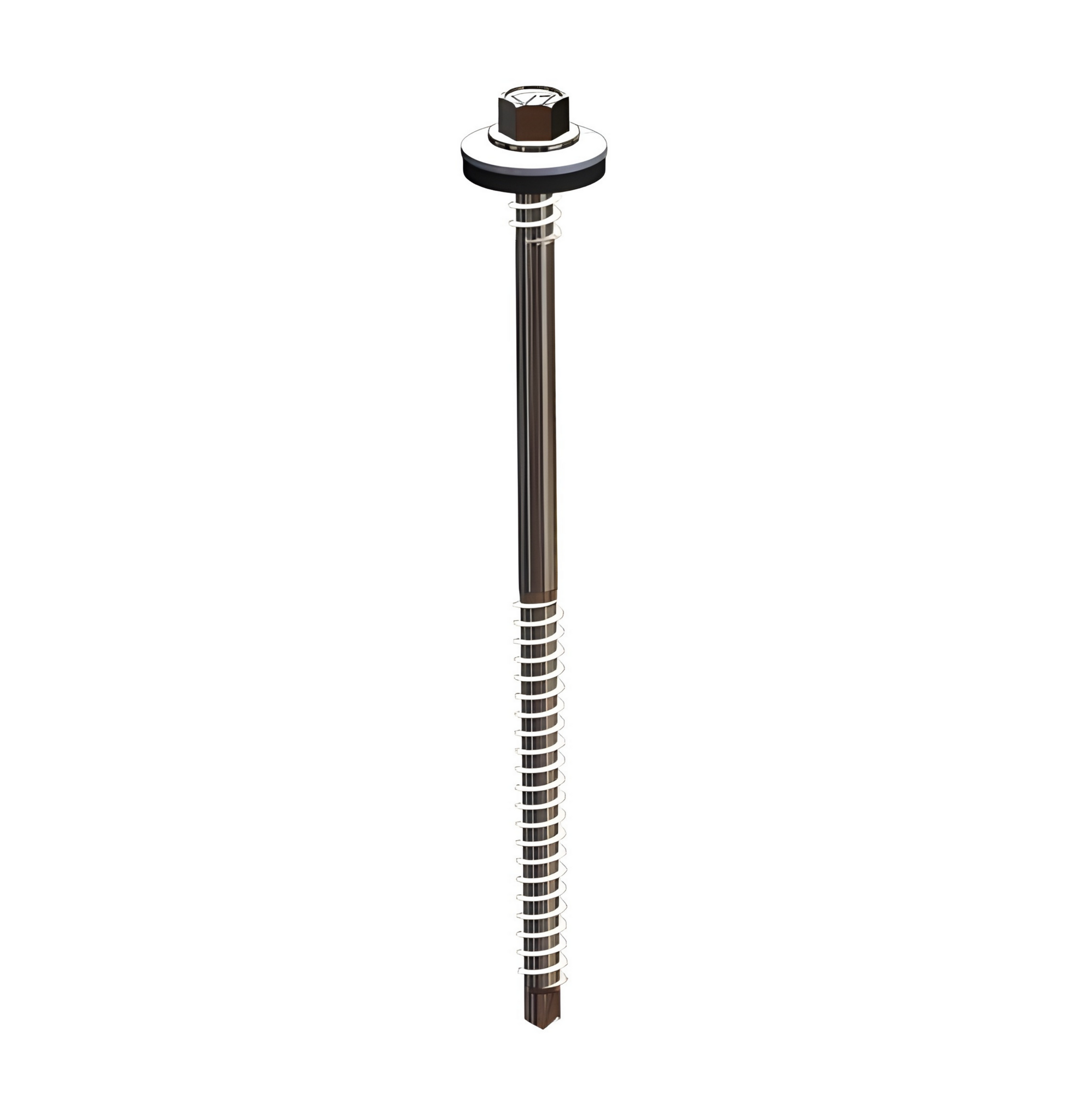 Deze verzinkte sandwichpaneelschroef is speciaal ontworpen voor een stevige en waterdichte bevestiging van sandwichpanelen op houten onderconstructies. Dankzij de zeskantkop (SW 5/16”) met aangeperste ring en boorpunt #2 is voorboren niet nodig, wat montage snel en eenvoudig maakt.