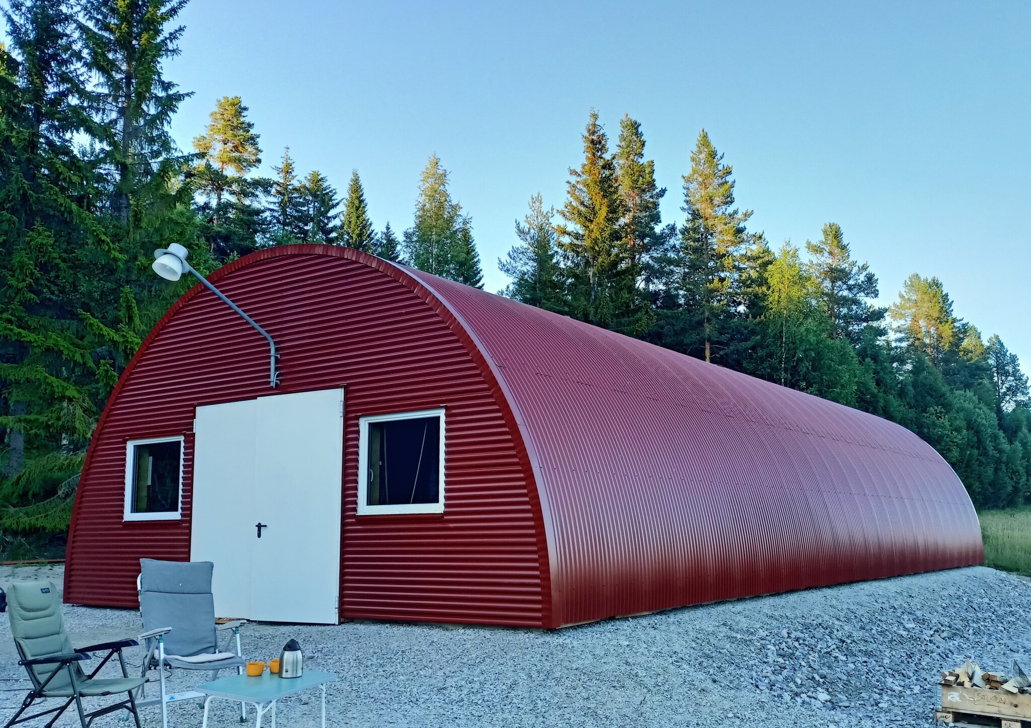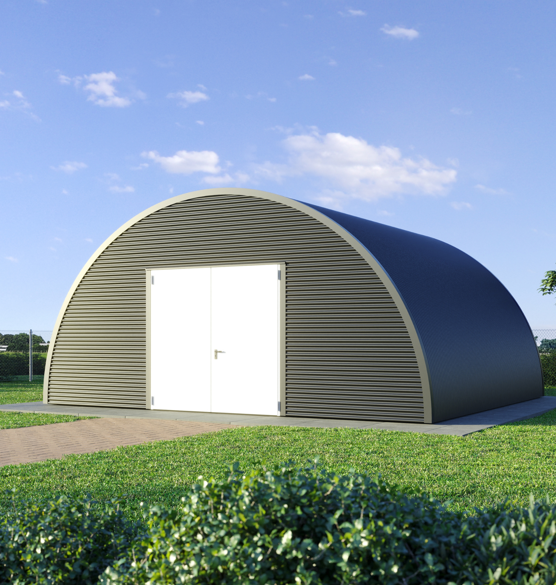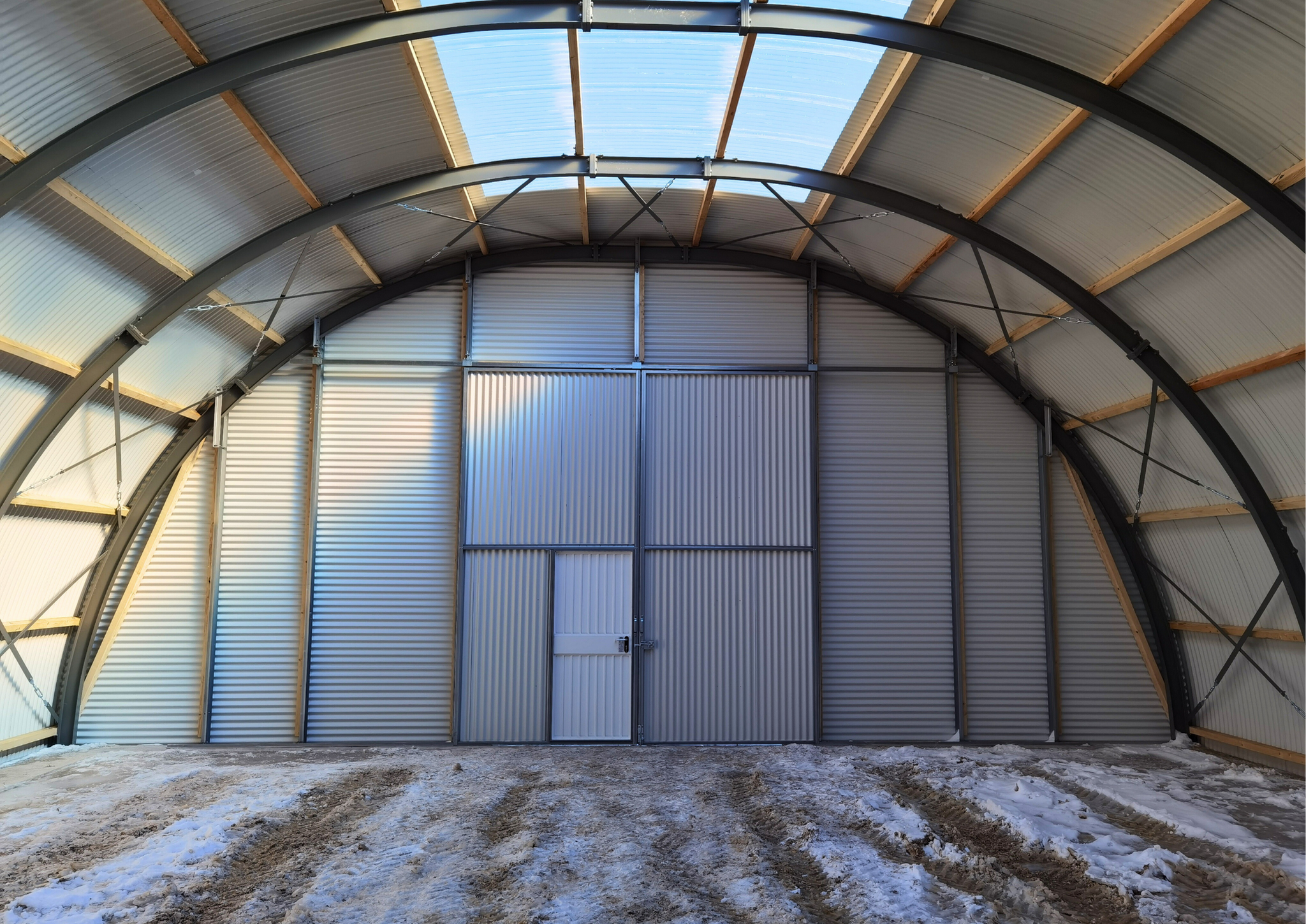 De iconische ronding maakt een lichte maar zeer sterke constructie mogelijk. Hierdoor is de loods bestand tegen hoge sneeuw- en windlasten.