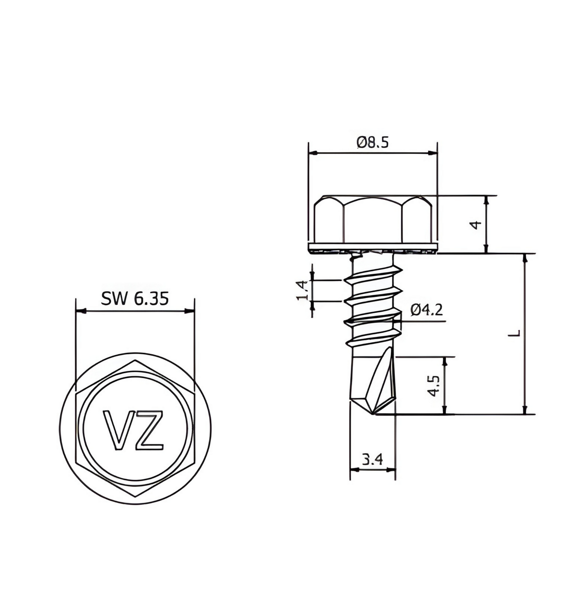 Onze Staaltex-schroeven hebben de volgende specificaties: