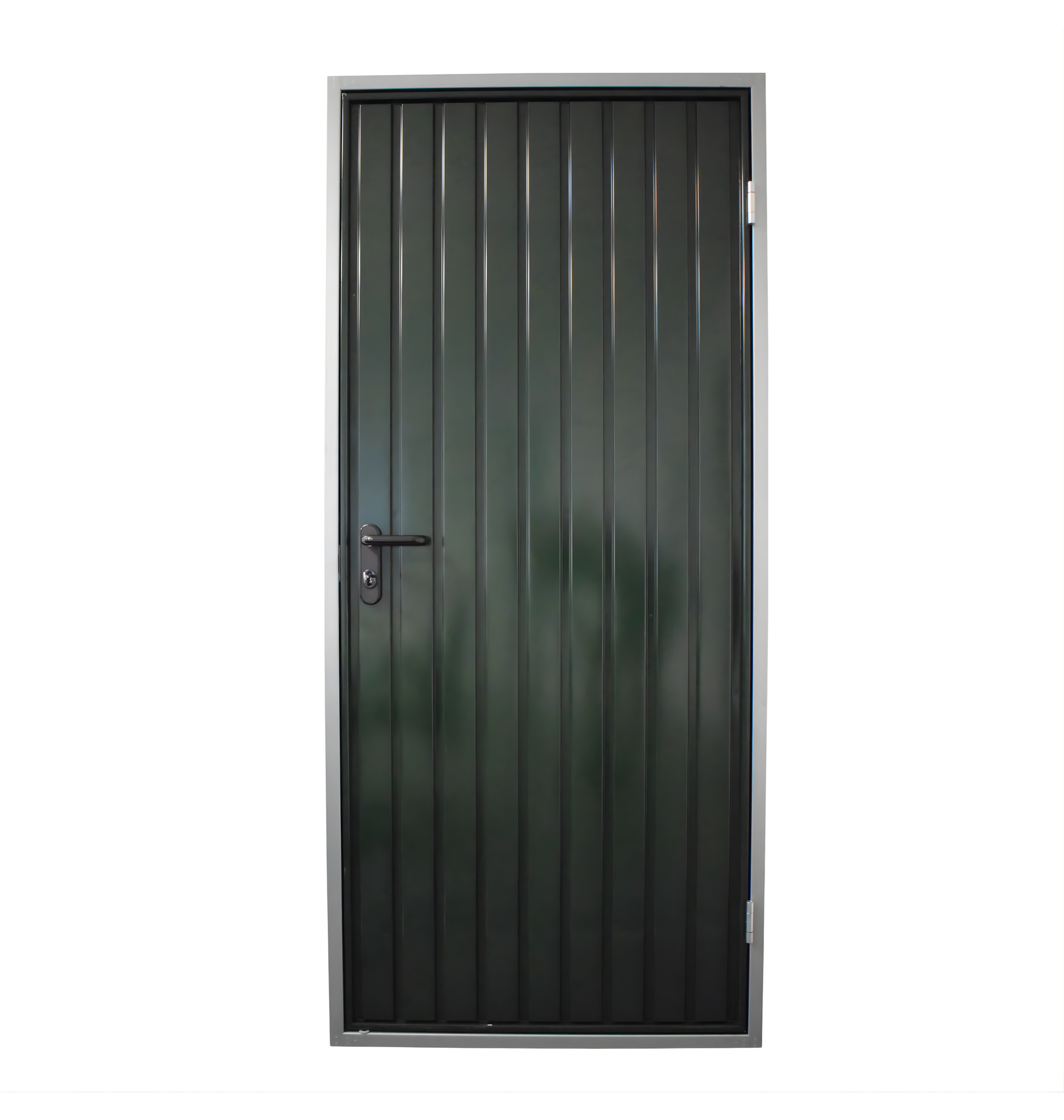 De deur is uitgevoerd in een verticaal geprofileerde staalplaat, wat zorgt voor een strakke uitstraling en uitstekende stabiliteit. Verkrijgbaar in onze standaard RAL-kleuren en zowel links- als rechtsdraaiend leverbaar. Dankzij de ruime vrije doorgang van 830x1962 mm is de toegang praktisch en ergonomisch in dagelijks gebruik.