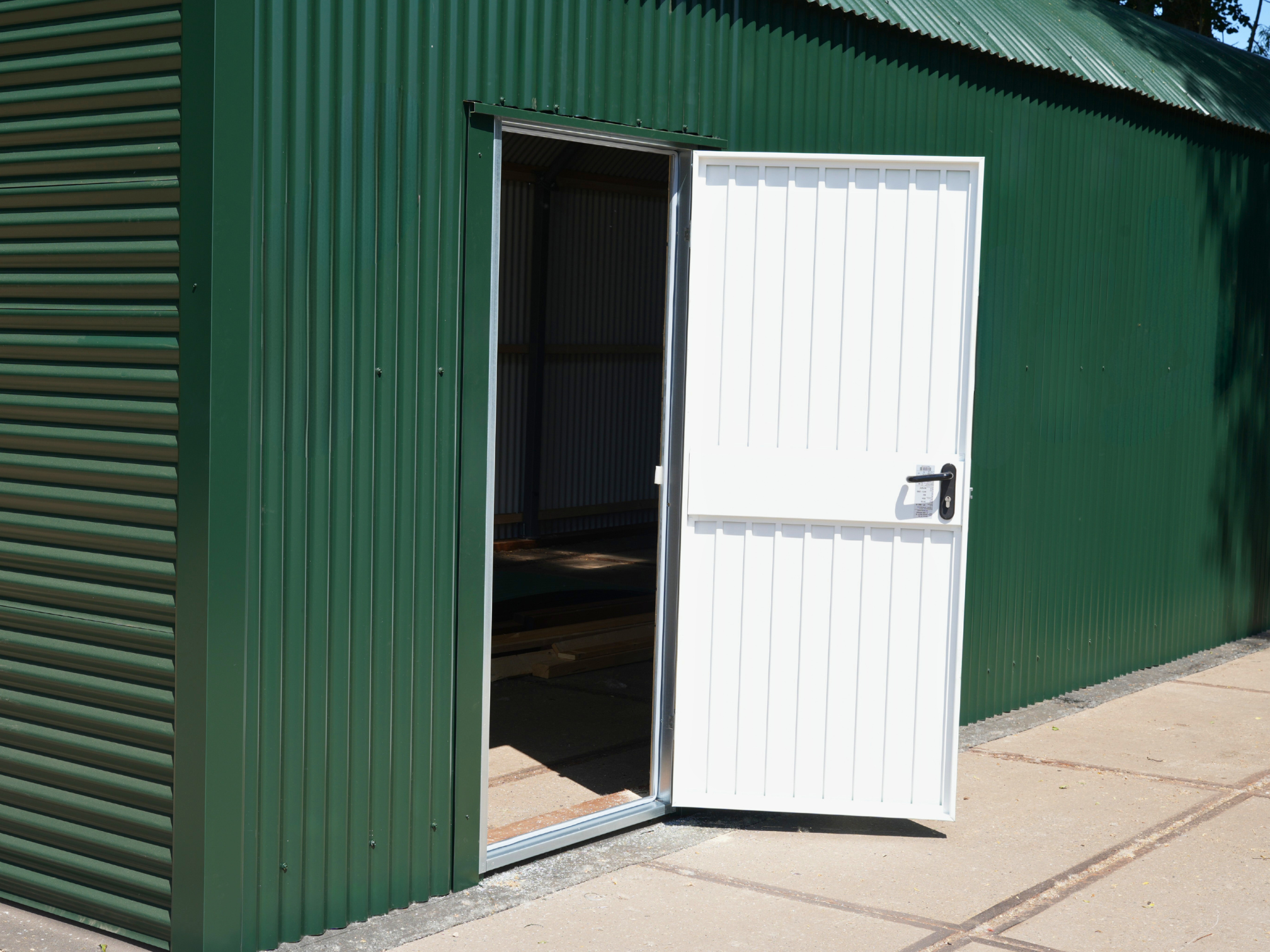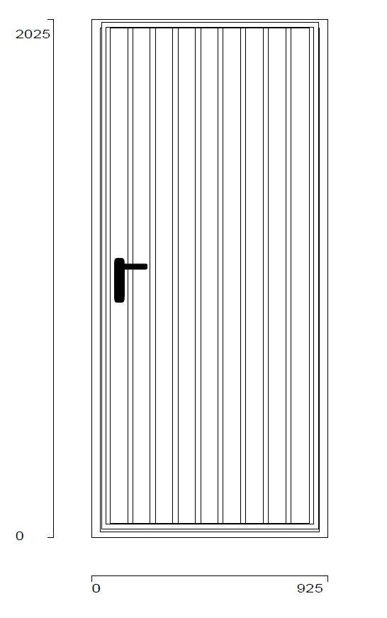 De deur is uitgevoerd in een 40 mm dik stalen paneel met 902 verticaal profiel, wat zorgt voor een strakke uitstraling en uitstekende stabiliteit. Verkrijgbaar in onze standaard RAL-kleuren en zowel links- als rechtsdraaiend leverbaar. Dankzij de ruime vrije doorgang van 830x1962 mm is de toegang praktisch en ergonomisch in dagelijks gebruik.